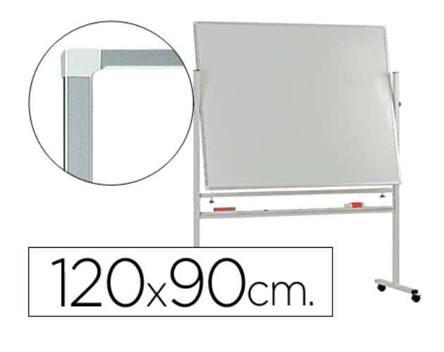 Quadro tripé com caixilho de plástico cinza. Superfície laminada em cor branco, apta para escrita direta com marcadores de quadro. Também apto para bloco de papel graças à sua mola superior. Pés telescópicos com altura regulável até 200 cm. Com prateleira inferior para marcadores e outros...