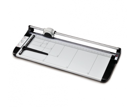 Equipamento de corte com base de alumínio. Medidas gravadas na base com os tamanhos de papel standard. Perfeita para o uso doméstico ou para escritório profissional. Lâmina com capa de plástico para uma maior segurança. é ideal para cortes precisos e limpos de papel, cartão e fotografias.